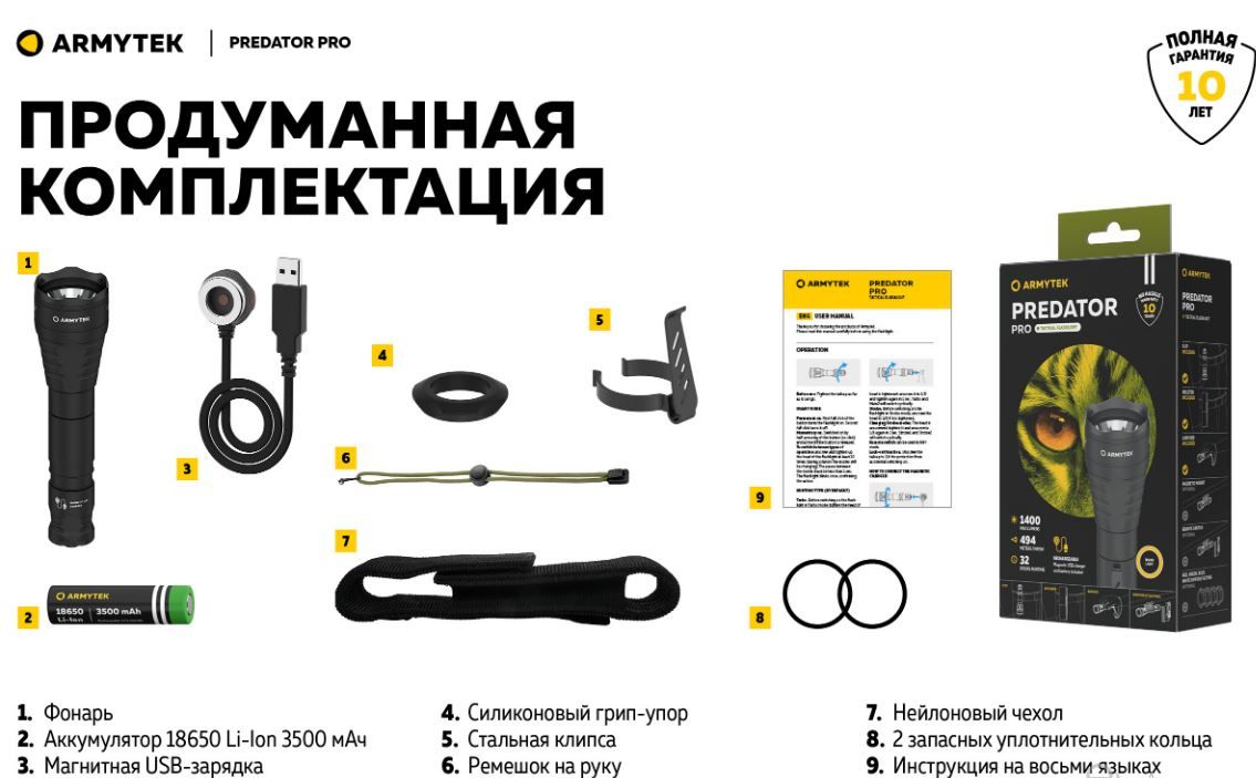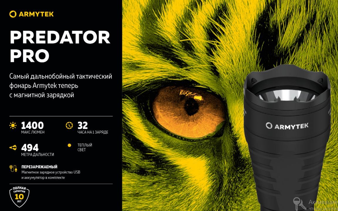 Читать все статьиФонарь Armytek Predator Pro Magnet USB Теплый