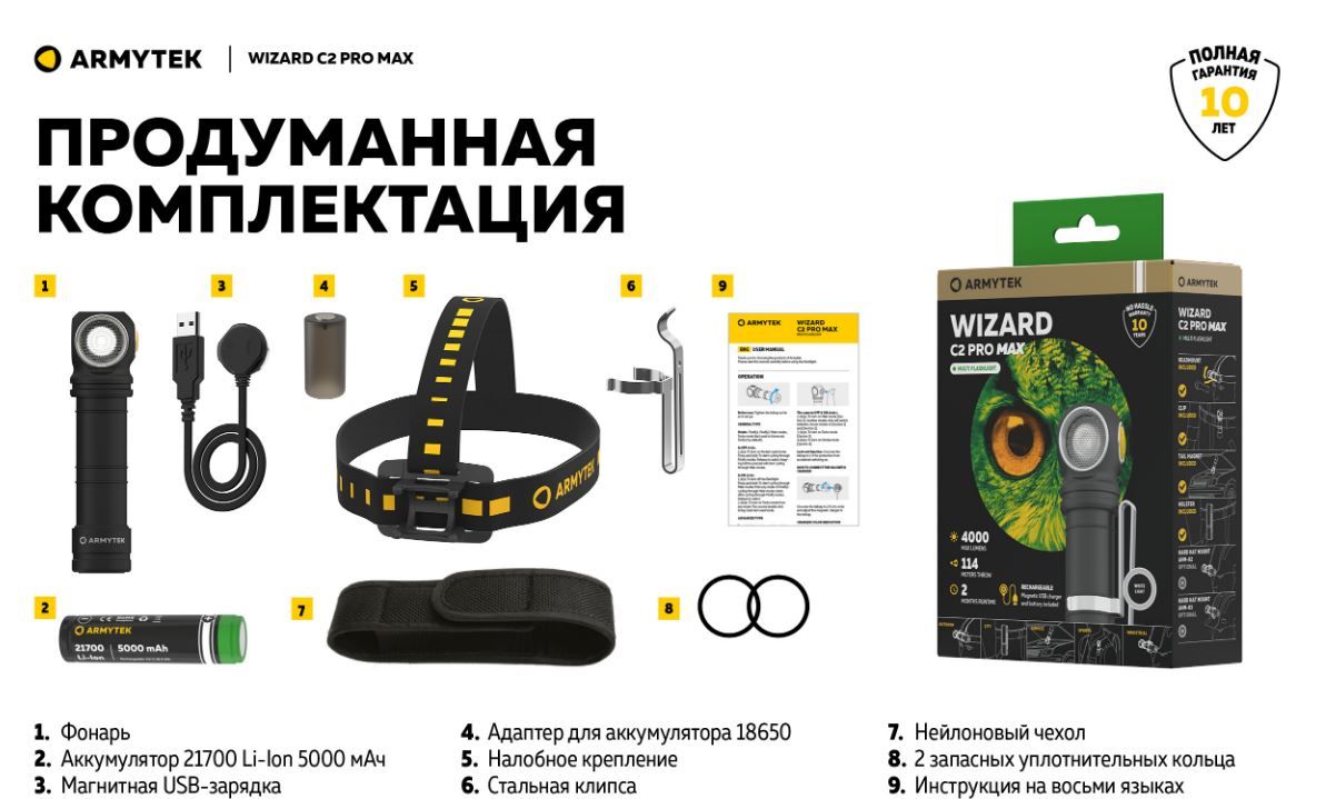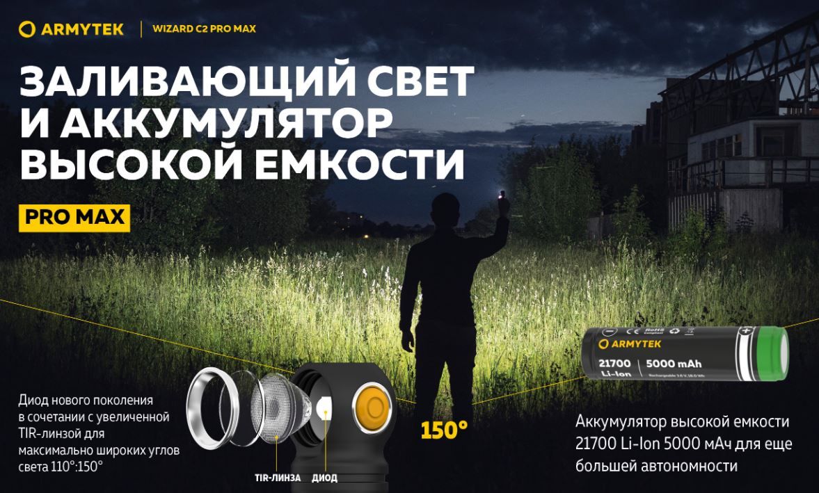 Читать все статьиФонарь Armytek Wizard C2 Pro Max Теплый