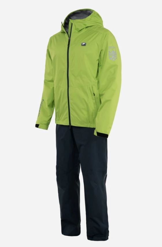предотвращает впитывание вязкой грязи и влаги, препятствуя появлению на поверхности следов и разводов. Артикулированный крой учитывает анатомию человеческого тела и обеспечивает полную свободу движений. Функциональный дизайн модели объединяет в себе продуманные детали и оригинальный цвет зелёного яблока. Высокий воротник плавно переходит в регулируемый капюшон, обеспечивая надежную защиту шеи от влаги и ветра. Объём капюшона настраивается с помощью резинки, расположенной на лицевой стороне. Куртка и брюки имеют по два вместительных боковых кармана на молнии. Центральная двухзамковая влагозащитная молния обеспечивает прочное соединение и защиту от воды и ветра. Все швы костюма полностью проклеены.