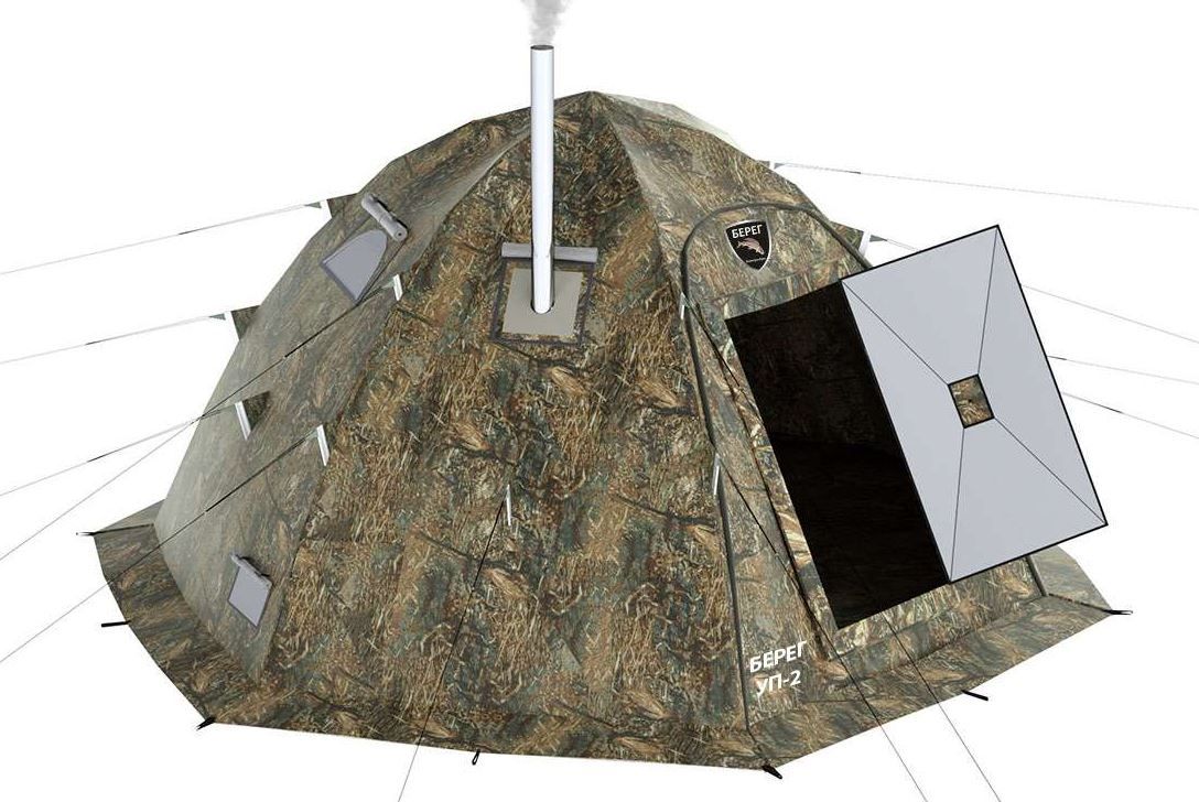 Универсальная палатка Берег УП-2 мини - двухслойная быстросборная трехместная палатка шатрового типа на шестилучевом алюминиевом каркасе.