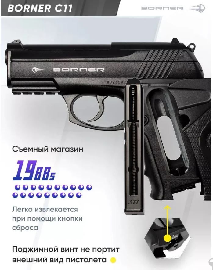 Borner - американская компания, специализирующаяся на производстве пневматического оружия. Бренд Борнер успел зарекомендовать себя на рынке благодаря низким ценам при неизменно высоком качестве.