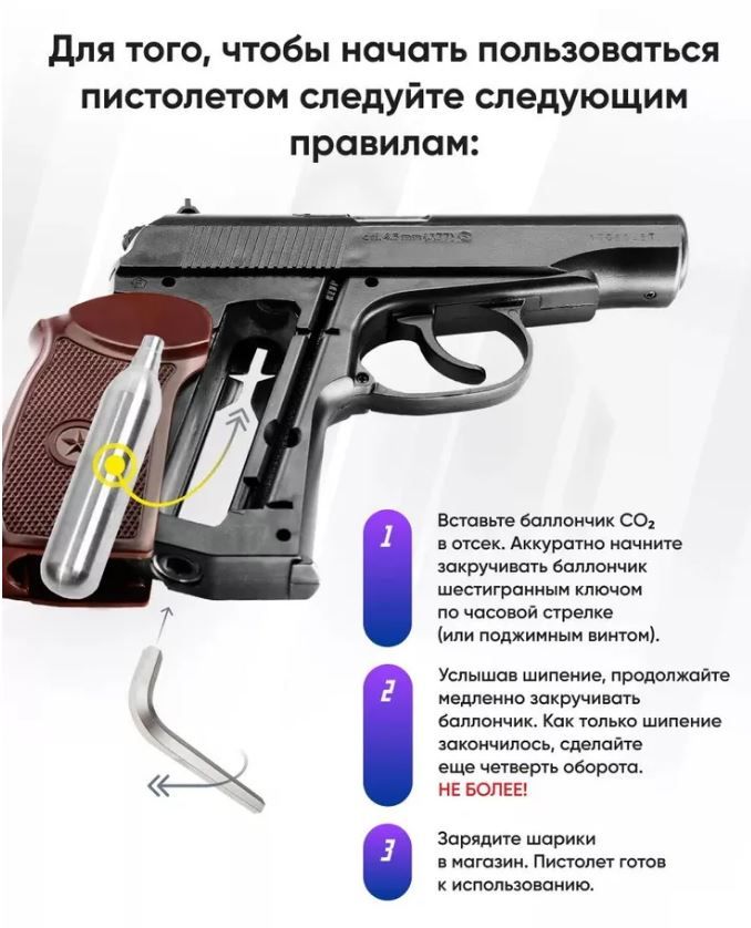 Данный пневматический пистолет является идеальным вариантом для развлекательной и спортивной стрельбы по банкам, бутылкам и мишеням. По принципу действия данный пневматический пистолет является газобаллонным. Для работы такого типа пневматических пистолетом требуются специальные баллончики с углекислым газом(СО2).