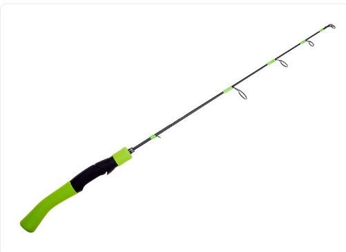 Ярко-зеленый цвет рукоятки делает зимнюю удочку хорошо заметной на снегу и льду.