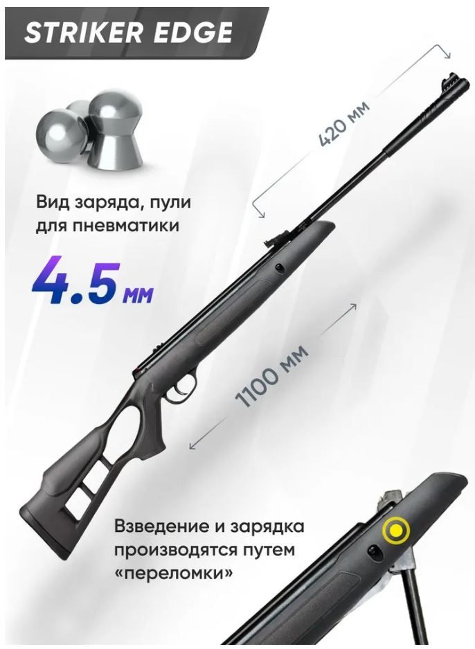 Читать все статьиВинтовка пневм.переломка Striker Edge 4.5мм 3 Дж Hatsan